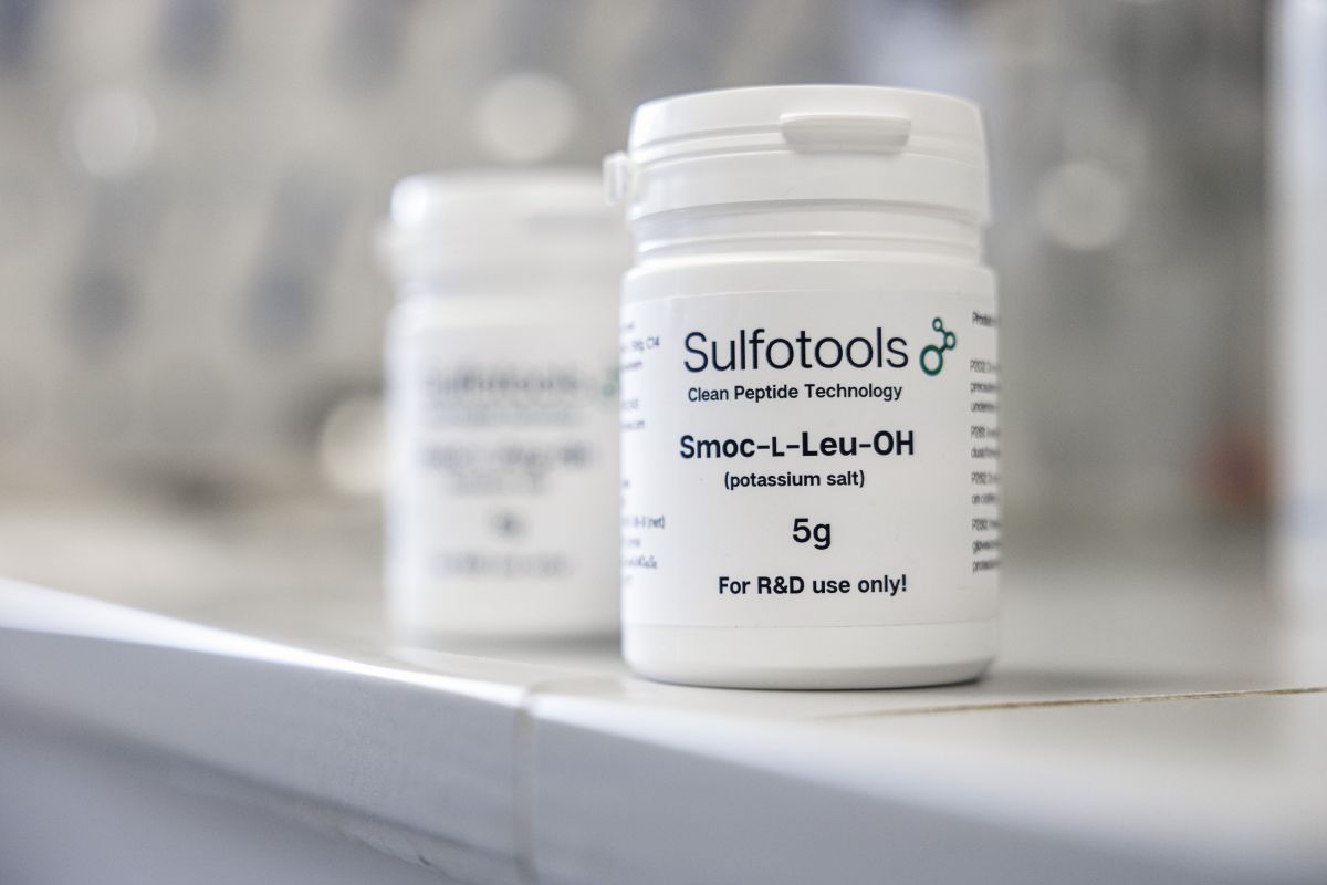 Bei der gezielten chemischen Herstellung von Peptiden braucht es sogenannte Schutzgruppen. Diese komplexen Verbindungen schirmen die zu verbindenden Aminosäuren während der Synthese vor ungewünschten Nebenreaktionen ab. In der herkömmlichen Peptidherstellung sind dafür giftige Lösungsmittel nötig, die entweder teuer und energieaufwändig recycelt oder mit einem hohen CO2-Ausstoß verbrannt werden müssen. Mit den Schutzgruppen von Sulfotools können organische Lösungsmittel in der Peptidproduktion durch Wasser ersetzt werden. Damit hat das neue Verfahren um Peptide zu produzieren einen enormen Impact auf die Umwelt.