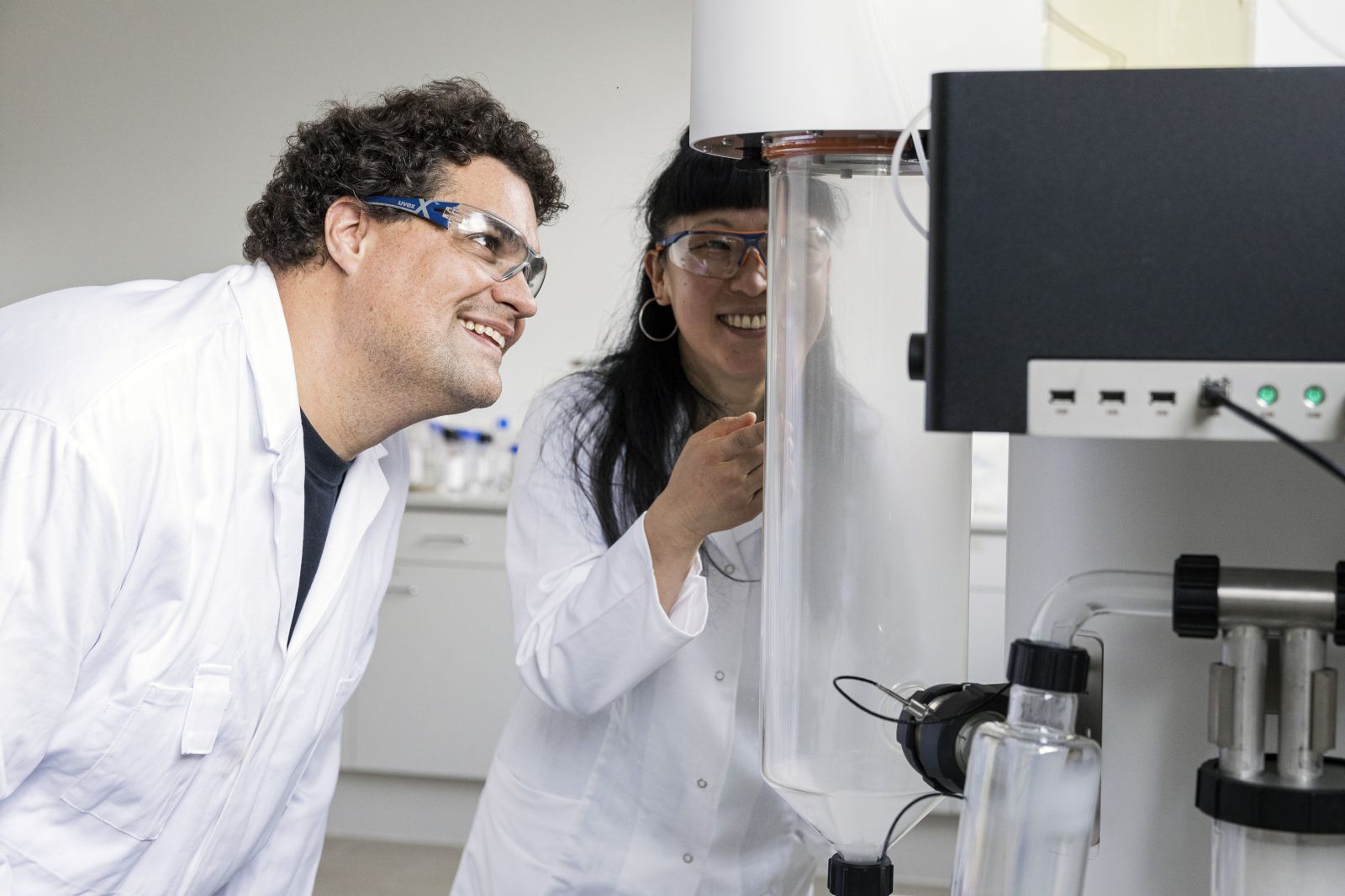 Er ist zurückhaltend und vergräbt sich gerne tief in die Forschung. Sie geht eher nach außen, kommuniziert, trommelt für Sulfotools. Denn mit ihrer Clean Peptide Technology haben die beiden eine Vision: bei der Peptidherstellung giftige Lösungsmittel gegen Wasser zu tauschen.